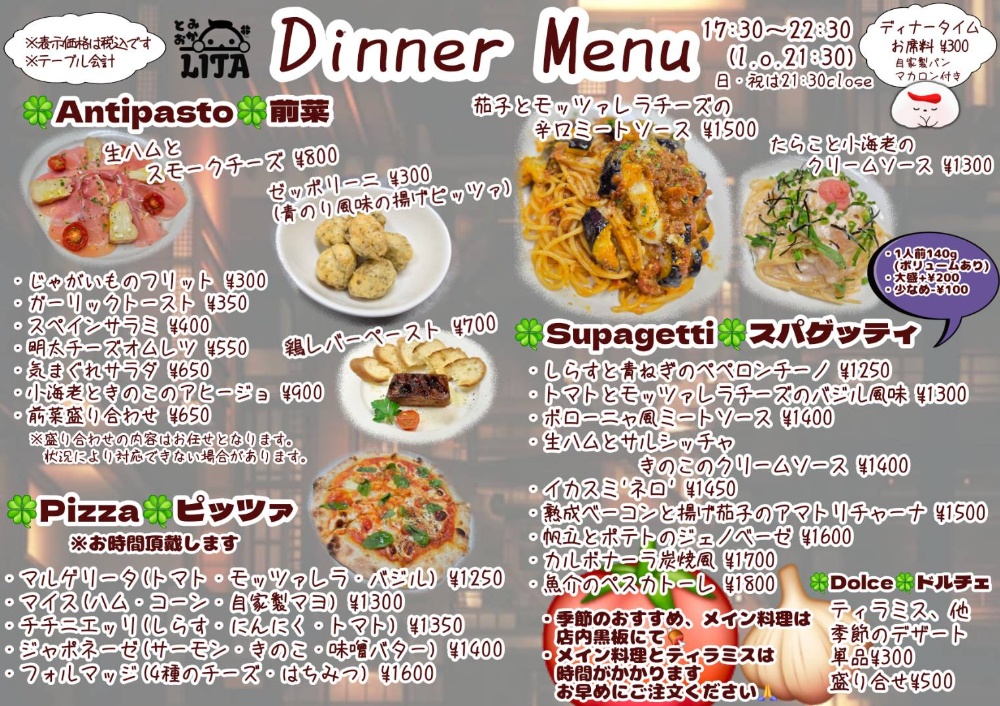 ランチ、ディナー共に税込価格です※ランチ現金のみ